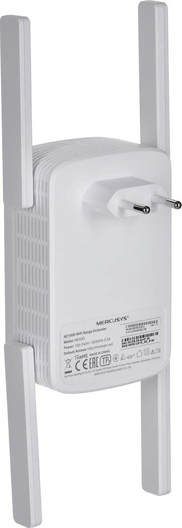 - ME50G është i pajtueshëm me çdo ruter Wi-Fi dhe mund të konfigurohet lehtësisht duke përdorur butonin WPS ose ndërfaqen e konfigurimit të bazuar në ueb. Ai përmban dy antena të jashtme që ofrojnë mbulim të fortë dhe të qëndrueshëm Wi-Fi, duke eliminuar zonat e vdekura në shtëpinë ose zyrën tuaj.