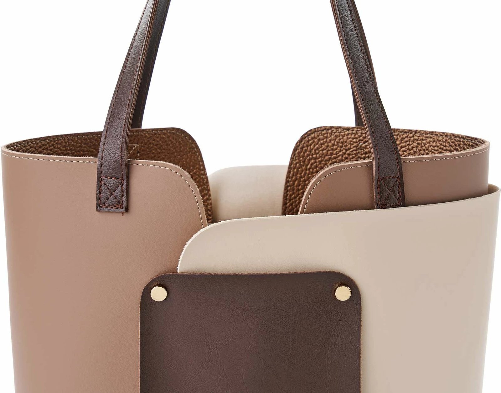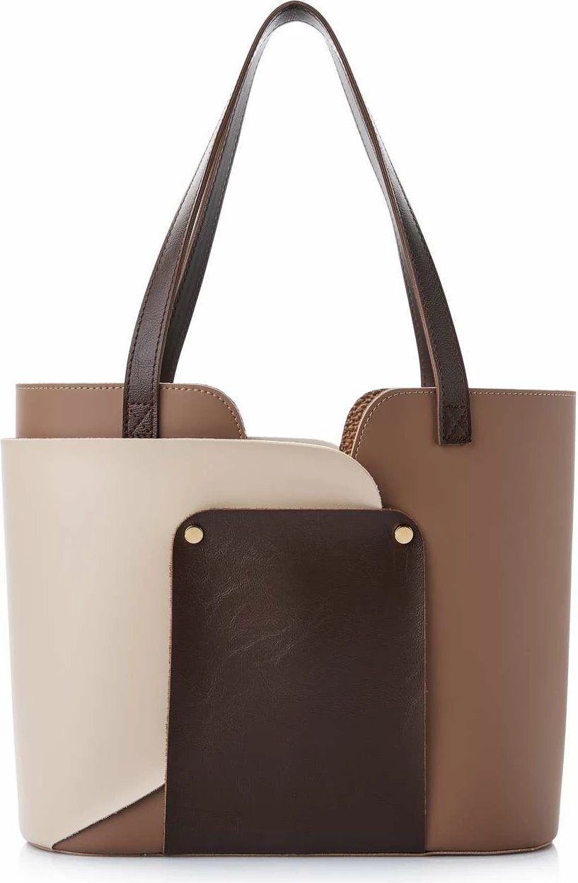 Bëj një deklaratë me çantën tonë Tote në kombinim të bukur të ngjyrës mink dhe krem. Dizajni elegant dhe materialet cilësore do të tërheqin vëmendjen kudo që shkoni, qoftë në zyrë apo në mbrëmje.