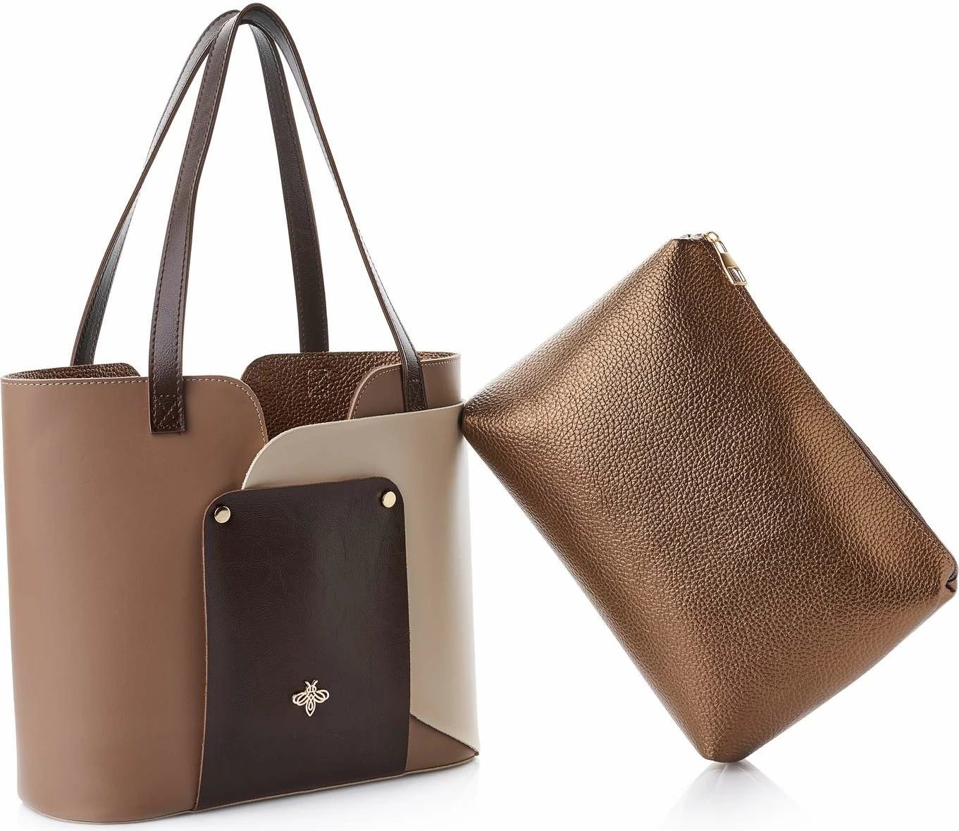 Çantë tote Lucky Bees, ngjyrë mink dhe krem, 1292