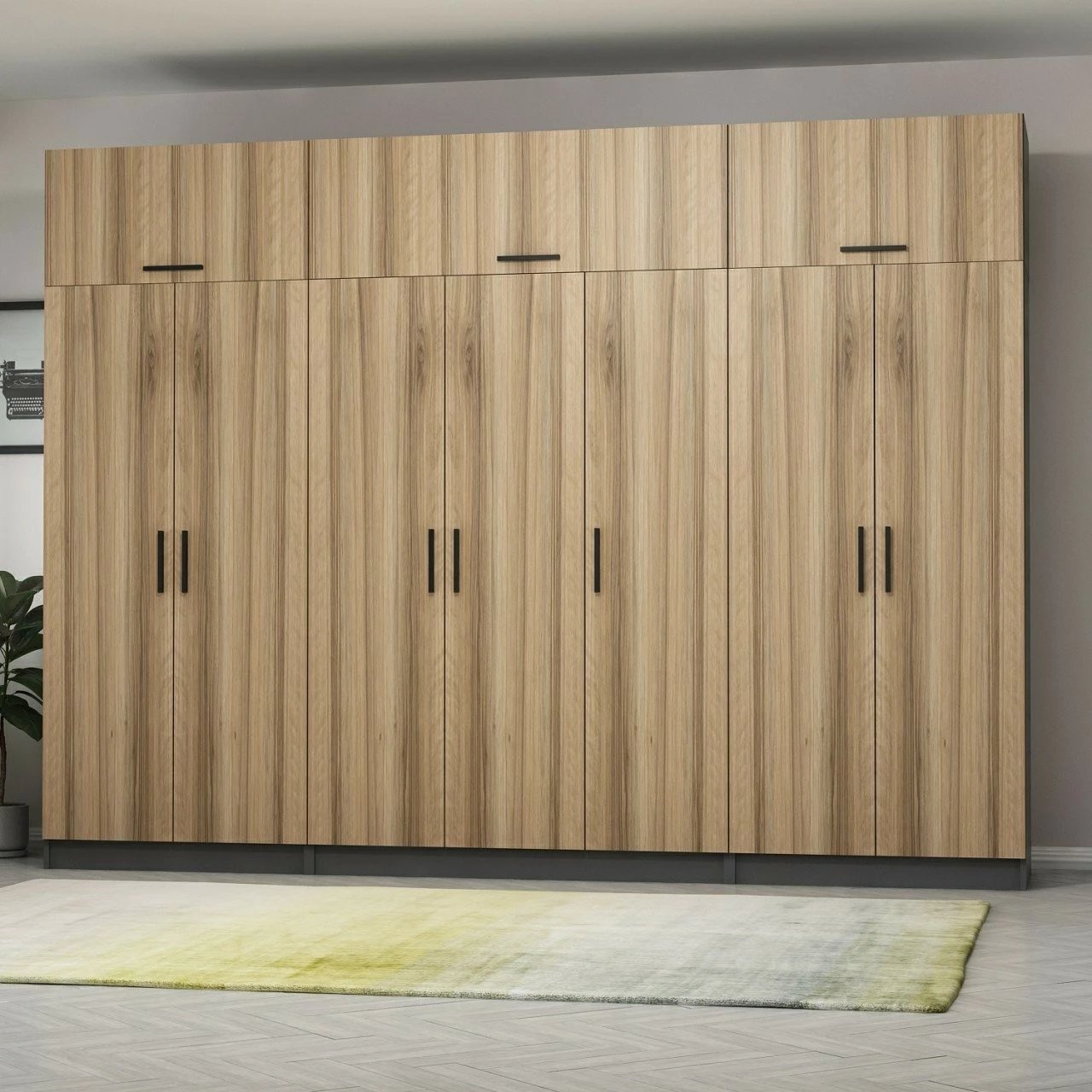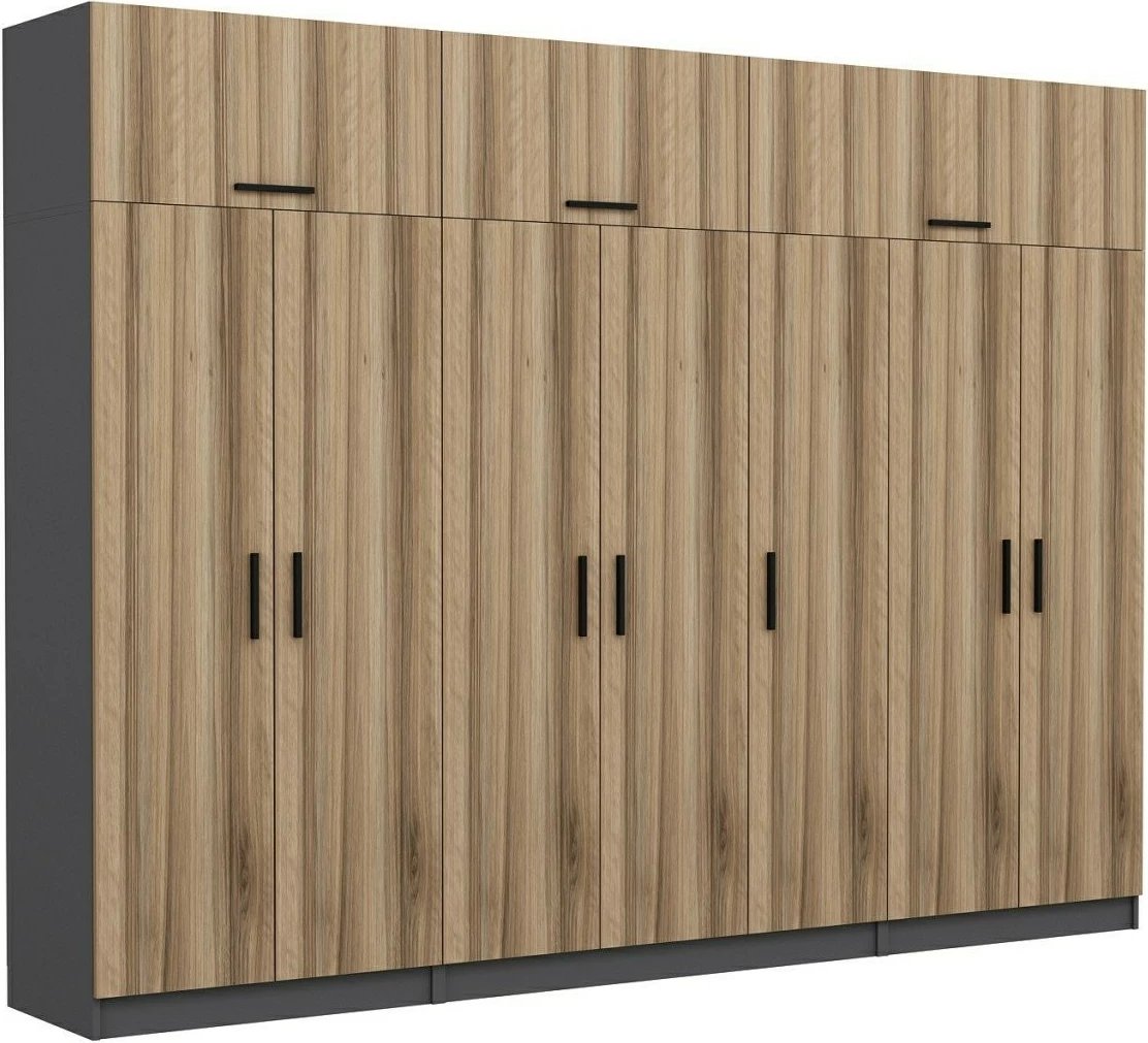 Dollap i madh Skye Decor, ngjyrë arre dhe antracit, 315x235x52cm, 13 pjesë