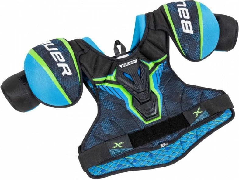Mbrojtëse supesh Bauer X Jr. janë të dizajnuara për lojtarët amatorë të sportit të dimrit. Materiali sintetik dhe ngjyrat e ndryshme ofrojnë një pamje tërheqëse dhe mbrojtje gjatë lojës.
