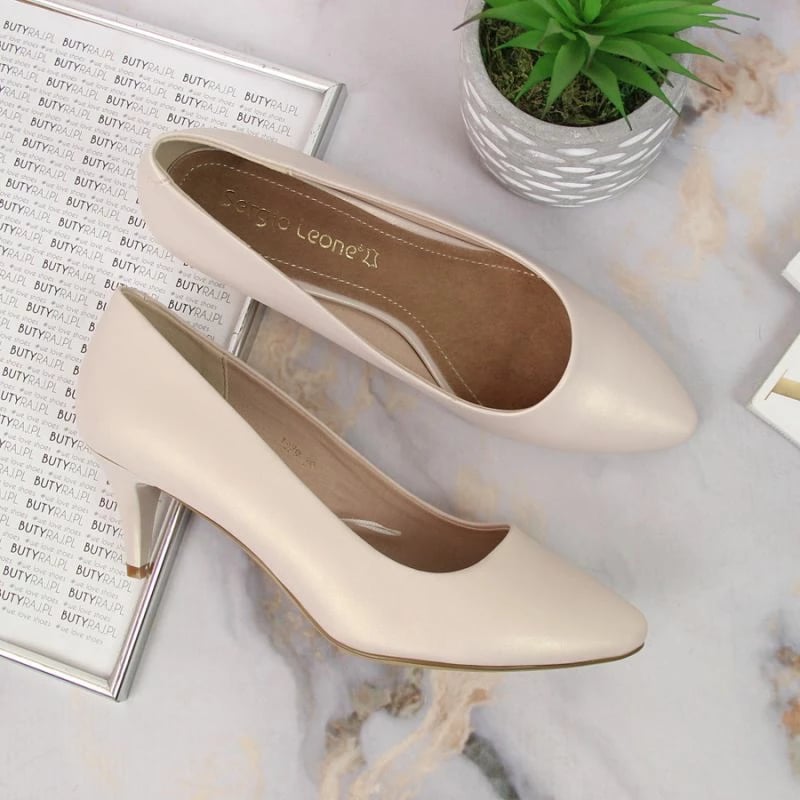 Këpucë me taka Sergio Leone, për femra, ngjyrë krem