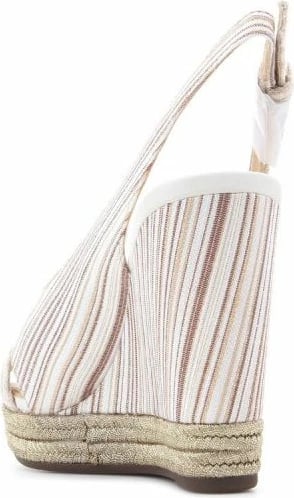 - Bukla e artë ofron mundësinë e rregullimit të rripit të thembrës dhe një përfundim rreth tabanit në stilin e një gërsheti të dyfishtë të artë.