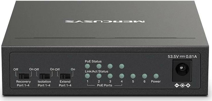 Switch-i Mercusys MS106LP është një pajisje e thjeshtë dhe e fuqishme për rrjetet e zyrave. Ky switch ofron gjashtë porta LAN me shpejtësi 10/100/1000 Mbps dhe katër porta PoE+, duke e bërë atë ideal për përdorim në ambiente zyrash që kërkojnë lidhje të besueshme dhe të fuqishme.