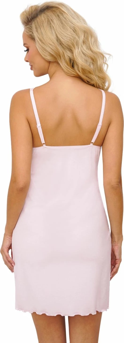 Maica e natës Donna është një kombinim delikat dhe tërheqës, rinor dhe elegant. E bërë nga viskoza e butë dhe e lëmuar, përshtatet në mënyrë perfekte me figurën. Në pjesën e sipërme, dantella shumë dekorative në ngjyrë rozë thekson dekoltenë, duke krijuar një imitim të një sutjene. Modelimi i shkëlqyer dhe materialet delikate sigurojnë komoditet dhe kënaqësi gjatë përdorimit. E prodhuar në Poloni.